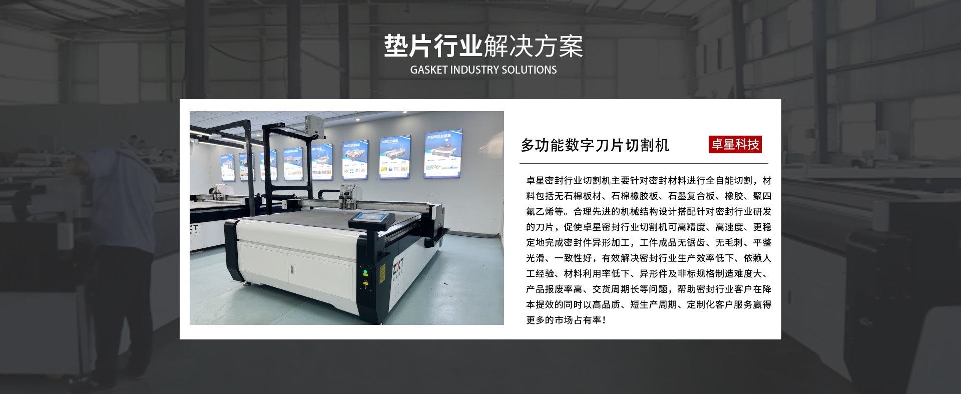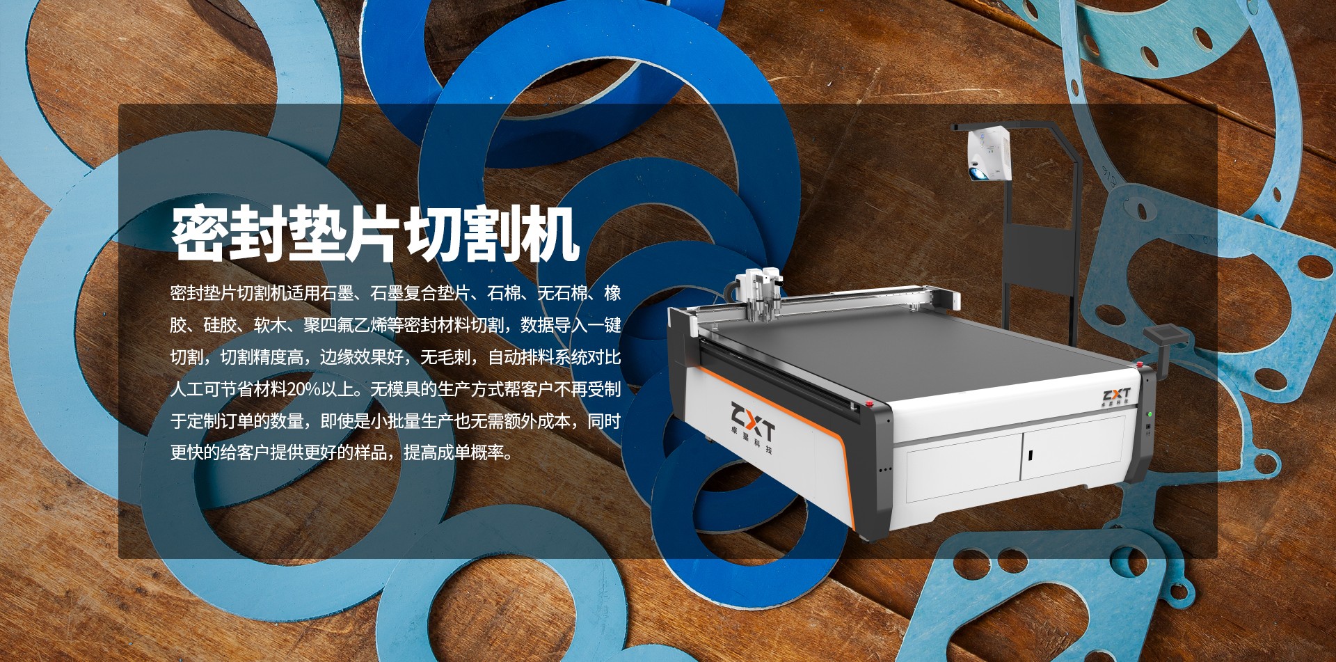 j9九游会密封行业切割机主要针对密封材料进行全自能切割,材料包括无石棉板材、石棉橡胶板、石墨复合板、橡胶、聚四氟乙烯等。合理先进的机械结构设计搭配针对密封行业研发的刀片,促使j9九游会密封行业切割机可高精度、高速度、更稳定地完成密封件异形加工,工件成品无锯齿、无毛刺、平整光滑、一致性好,有效解决密封行业生产效率低下、依赖人工经验、材料利用率低下、异形件及非标规格制造难度大、产品报废率高、交货周期长等问题,帮助密封行业客户在降本提效的同时以高品质、短生产周期、定制化客户服务赢得更多的市场占有率!